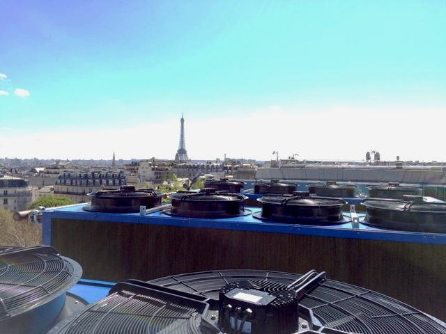 Para garantizar la calidad de refrigeración de las oficinas de alto standing situadas junto a los Campos Elíseos, se han instalado en su tejado tres refrigeradores adiabáticos de la marca EWK.